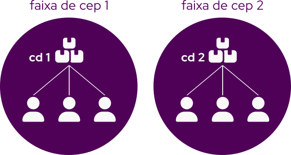 Opere delimitando a faixa de atuação de cada centro de distribuição por faixa de CEP.