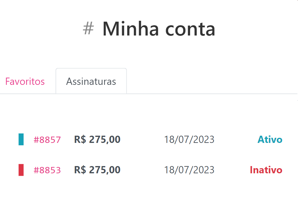 Tendo pedidos recorrentes ativos em sua conta, o cliente os verá dentro da aba "Assinaturas" em sua conta podendo acessar o pedido para reativá-lo ou cancelá-lo por conta própria.